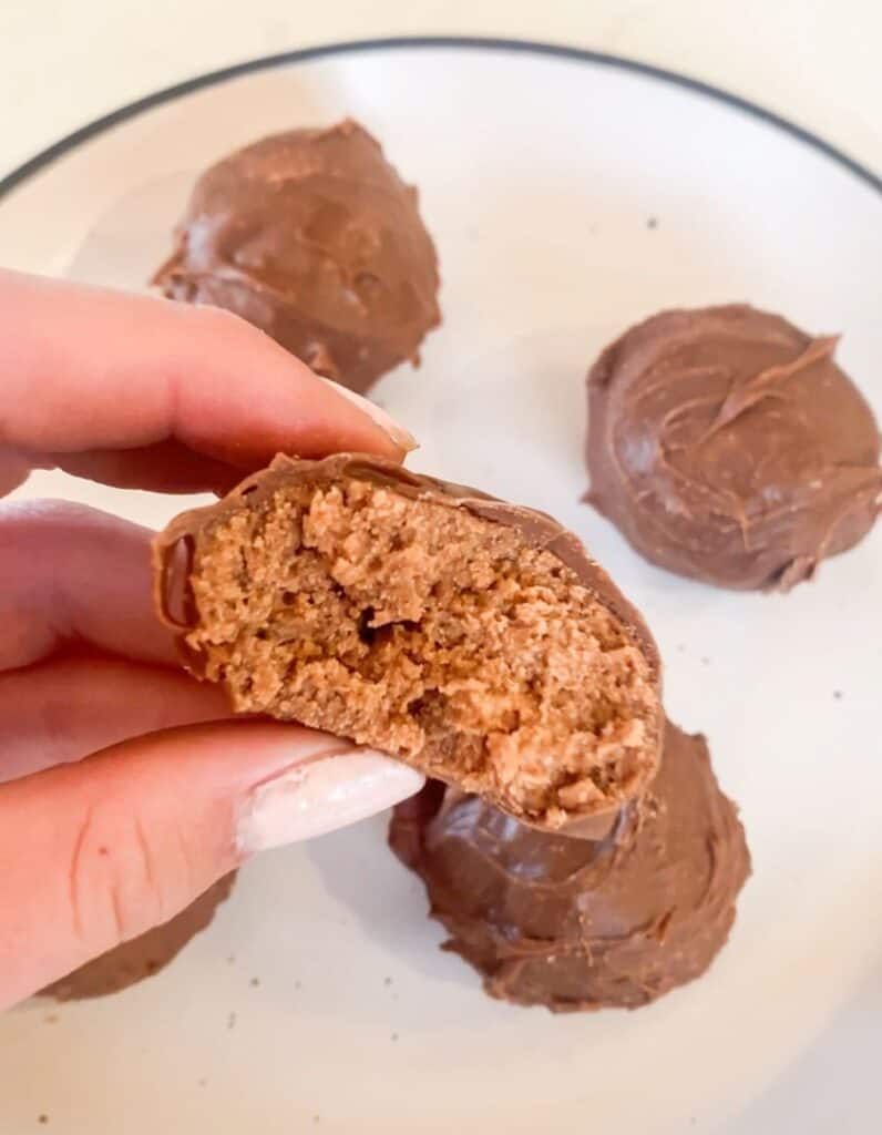 - Dip the balls in the melted chocolate, and/or drizzle on top. Put them back in the fridge for 10 minutes or until the chocolate has set.